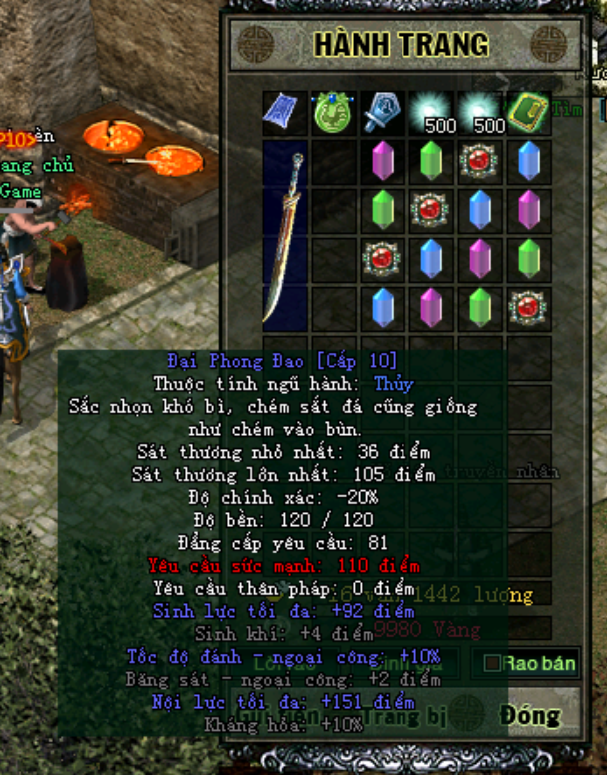 Bước 3: Bỏ món vũ khí muốn trùng tu vào khung giao cho thợ rèn