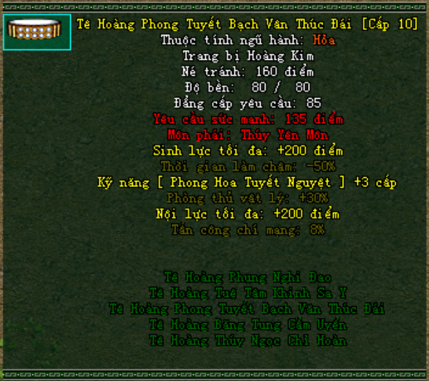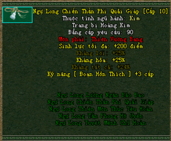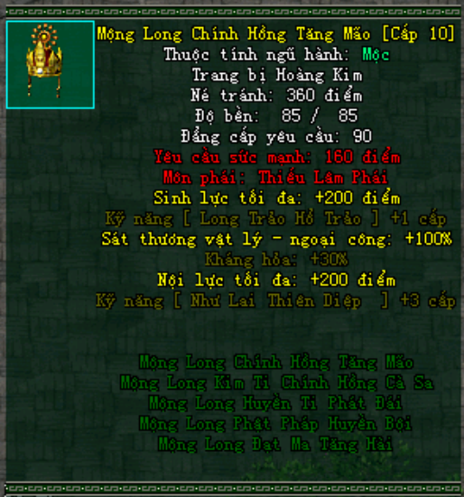 Danh sách trang bị hoàng kim môn phái max anh em tham khảo, lưu ý hình ảnh chỉ mang tính chất minh họa, khi anh em mở ra sẽ ngẫu nhiên thuộc tính.
