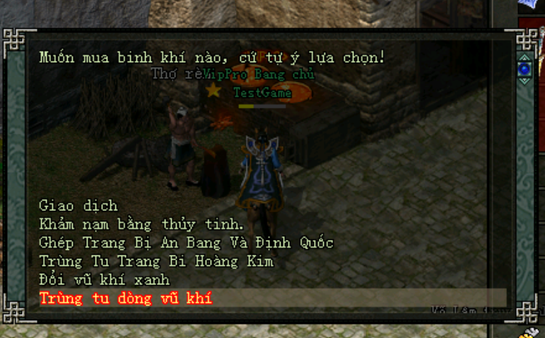 Bước 3: Bỏ món vũ khí muốn trùng tu vào khung giao cho thợ rèn